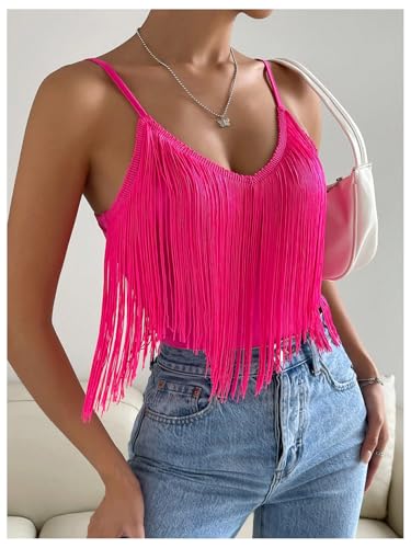 Women's Sleeveless Fringe Camisole Tops V Neck Spaghetti Strap Summer Cami Shirts 6