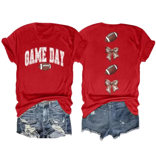 HOT ! Football Shirts for Women Game Day Football Mom Tshirt Soccer Lover Bow Graphic Tee Shirt