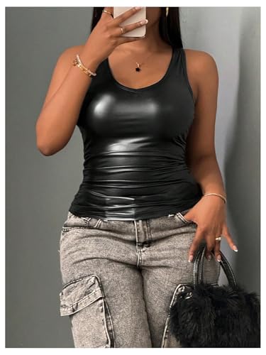 Floerns Women's Plus Size Sleeveless Tank Top Ruched V Neck Leather Camisole Shirt 5
