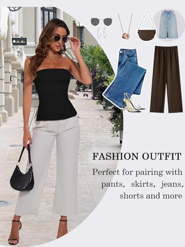 HOT ! Tube Tops for Women Strapless Top Going Out Split Bandeau Top Slim Off Shoulder Bustier Backless Summer Tops