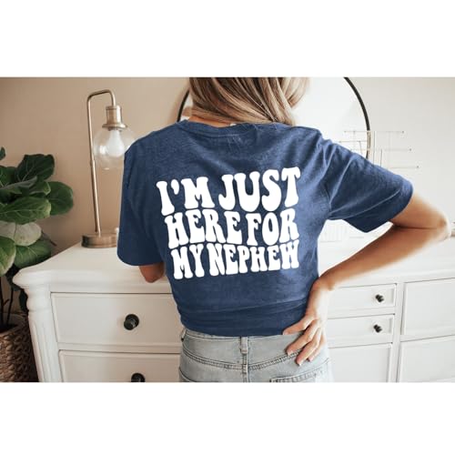 • Feature: I’m just here for my nephew shirt, auntie birthday gift shirt, funny graphic tee, aunt tshirt, fun letter print aunt shirts, auntie to be shirts, casual tshirts for women