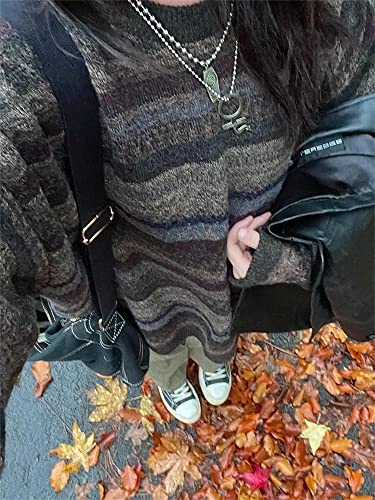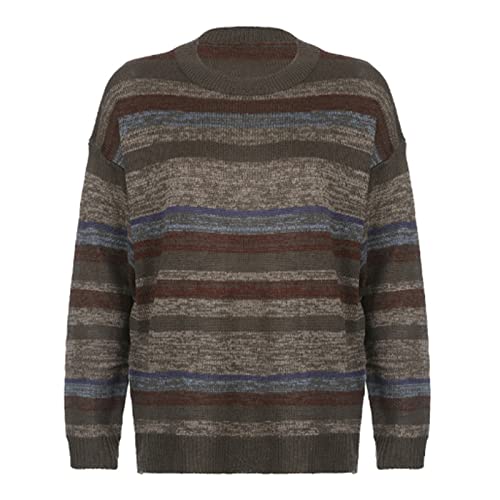 More information about Women Y2K Argyle Striped Pullover Sweater Casual Long Sleeve Round Neck Vintage Preppy Style Pullover Knitwear
