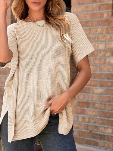 MARZXIN Womens Sweater Crewneck Short Sleeve Knit Pullover Tops Causal Loose-Fit Lightweight Sweaters 3