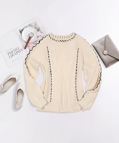 • Cable Knit Oversized Sweaters for Women Fall: This women's jumper features a round neckline, long sleeves, cable knit pattern and chic color-block design in thick knit fabric for fall and winter warmth. The dressy casual women's tops sweater jumper offers a relaxed loose fit with seamless color-block detailing, blending comfort and style effortlessly.