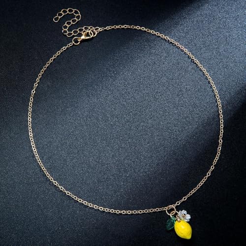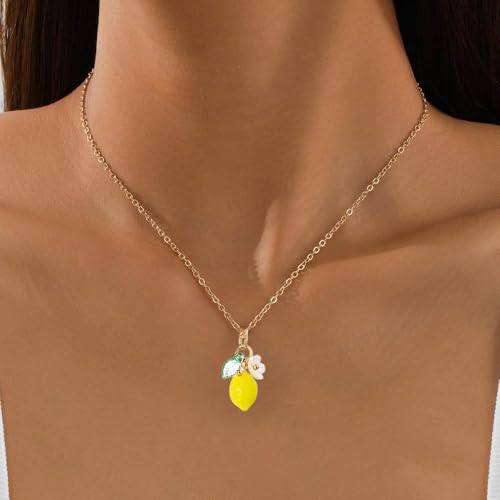 • Design: This charming lemon fruit necklace features a yellow citrus-shaped pendant as the main element, complemented by decorative leaf and flower patterns, paired with a delicate gold chain, presenting a refreshing and summer-like appearance. With its unique natural style, it adds a vibrant touch to your outfit, enhancing your confidence and charm, whether for casual outings or themed parties