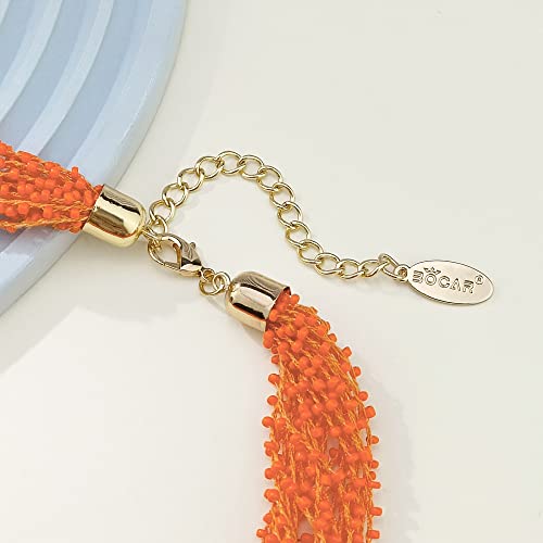 Bocar Statement Multi Layer Beaded Handmade Circle Pendant 20" Costume Necklace for Women 5
