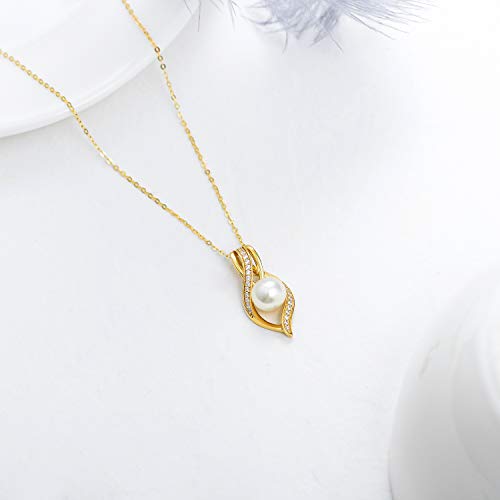 More information about SISGEM Solid 14K Gold Pearl Necklace for Women Freshwater Cultured Pearl Pendant Necklace with Moissanite Dainty Jewelry Anniversary for Wife, Mom, 16''-18''