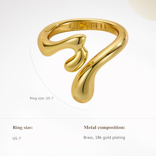 Cicy Bell 18k Gold Plated Rings for Women Trendy Irregular Waterdrop Melting Liquid Statement Chunky Ring Minimalis Jewelry Gifts 4