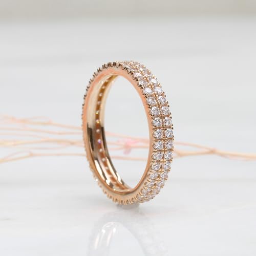 More information about DoubleAccent 14K Rose Gold Plated Sterling Silver Ring Round CZ Stone High End 2 Row Stackable Eternity Ring (Size 5 to 9)