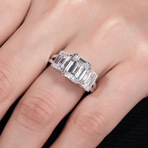 AnuClub Round/Emerald/Marquise Cut Moissanite 3 Stones Engagement Rings D Color VVS1 Round Cut 925 Sterling Silver Anniversary Wedding Promise Rings for Women 6