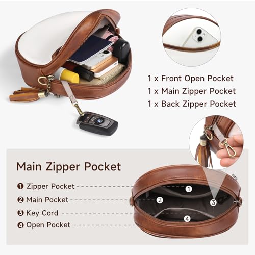 • [High-Quality Genuine Leather] Crafted from premium genuine leather, this circle crossbody bag features a smooth texture and a chic look. The sturdy leather ensures durability and timeless elegance for daily wear