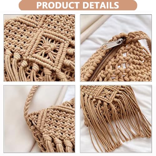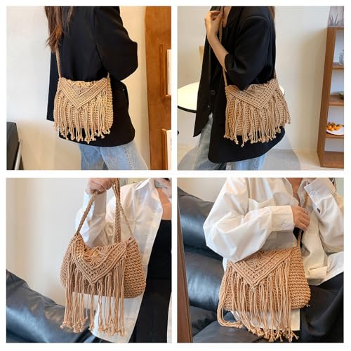 Crochet Crossbody Purse for Women Macrame Hobo Purse Handwoven Boho Summer Beach Shoulder Bag Tassels Crochet Tote Handbag 5