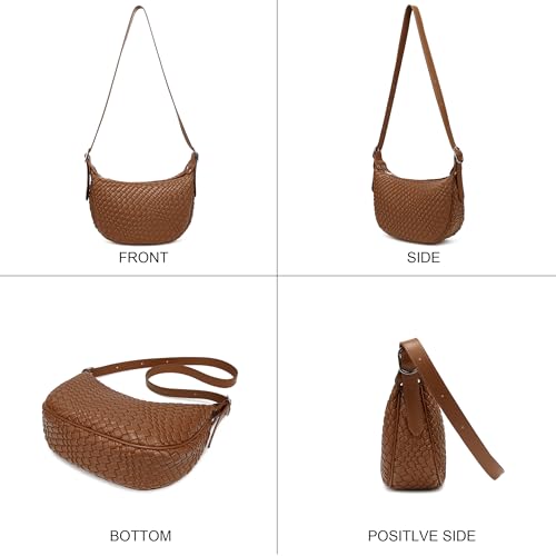 Queenoris Woven Small Crescent Bags for Women, Vegan Leather Shoulder Bag Trendy Crossbody Purses with Adjustable Strap 5