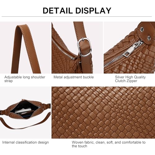 • 【Large capacity reference size】:L 7 * W 3.5 * H6.5 inches,Shoulder Strap Length: 21.5 inches.The Crescent Bag is made of durable woven leather and comes with an adjustable shoulder strap, which makes it very convenient to wear cross-body, hand-held, tucked under the arm or on one shoulder.It is more comfortable to carry, and the crescent bag has sufficient capacity to store daily necessities such as mobile phones, wallets, small cameras, keys, cosmetics, etc.
