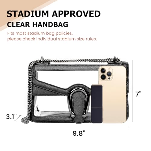 • Stadium Approved: Designed for stadium bag policy, sizes at 9.8" L x 7” H x 3.1” W, falling under the maximum regulated size most commonly required by secure venues. This clear purse for women helps you get through security much easier and keep you trendy and stylish at sports events, concerts, games, and festivals.