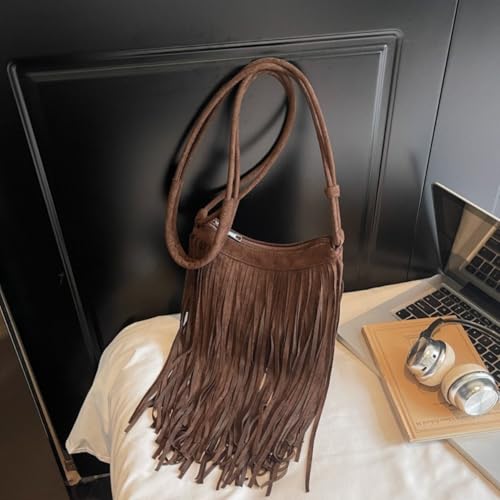 HOT ! Women's Boho Fringe Faux Suede Tote Bag, Large Capacity Retro Tassel Hobo Shoulder Purse, Hippie Western Crossbody Purse