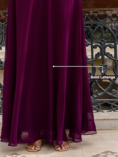 More information about RENDMALLS Women's Georgette Sequin Embroidery Crop Top Lehenga with Shrug Suit Set Ethnic Fusion Wear