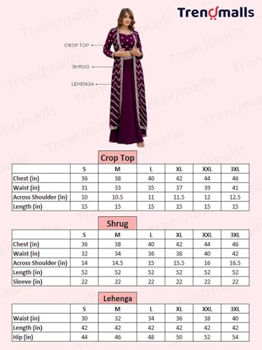 • Measurement - Shrug: Length 52 Inch, Sleeve Length: 22 Inch, Flair: 2.2 mt || Lehenga Flair: 4.2 mt, Lehenga Length: 42 inch || Crop Top Length: 15 inch