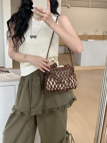 Leather Hollow Cloud Bag Shoulder Messenger Bag Handbag Summer Beach Seaside Vacation Handwoven Clutch Drawstring 6