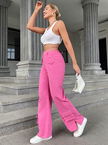 More information about WDIRARA Women's High Waisted Tie Back Split Hem Cargo Pants with Flap Pockets