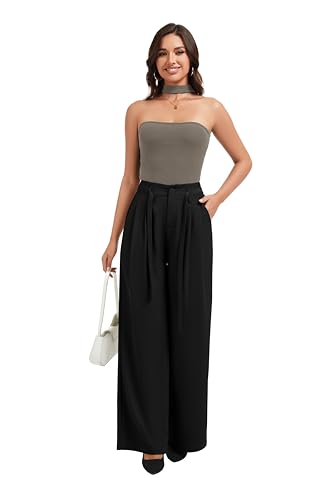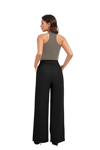 FUNYYZO Wide Casual Pants Women's High Elastic Waisted Business Work Trousers Long Pants 1