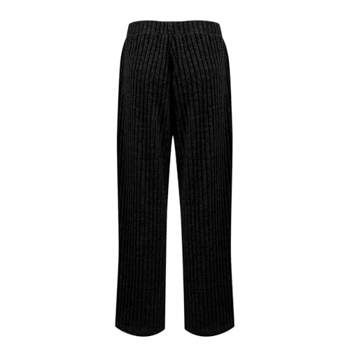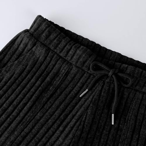 HOT ! Womens Wide Leg Pants Casual Ribbed Elastic Waist Lounge Pants Drawstring Loose Knit Cute Pajama Bottoms with Pocket