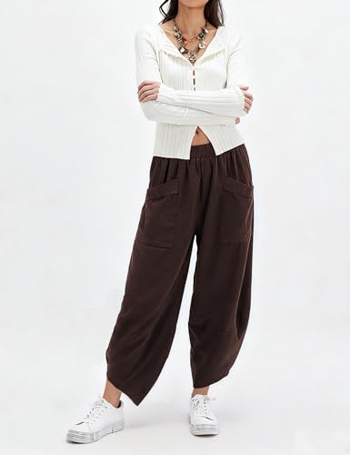 Yeokou Womens Baggy Wide Leg Pants Casual Corduroy Elastic Waist Harem Trousers with Pockets 6
