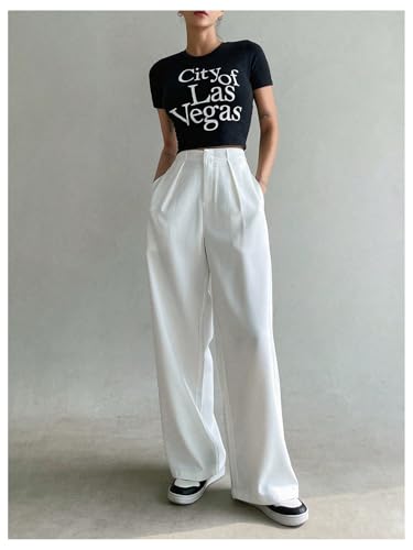 HOT ! Floerns Women's High Waisted Wide Leg Suit Pants Business Work Pleated Trousers