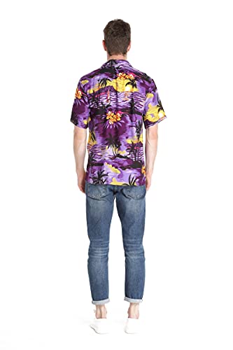 Matchable Couple Hawaiian Luau Shirt Smock Top Wide Legged Pants in Sunset Purple 5