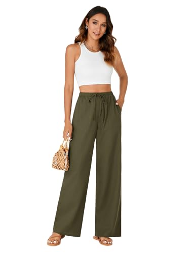 More information about Vrtige Women's Casual Cotton Linen Drawstring High Waist Wide Leg Long Pants Trousers with Pocket