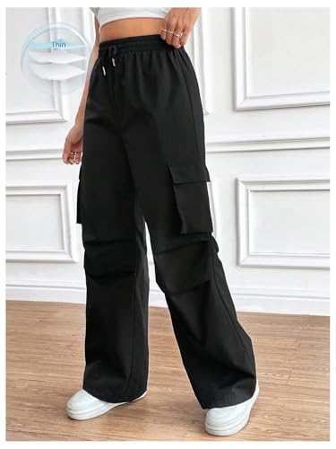 • Feature: Cargo pants for women, high rise, straight leg, drawstring, elastic waist, long length, loose fit, with flap pockets