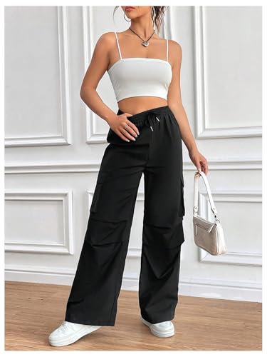 WDIRARA Women's High Waist Cargo Pants Drawstring Straight Leg Joggers with Pockets 1