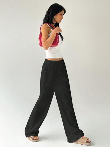 Womens Classic Casual Pants Plain Low Waist Straight Leg Pants 5