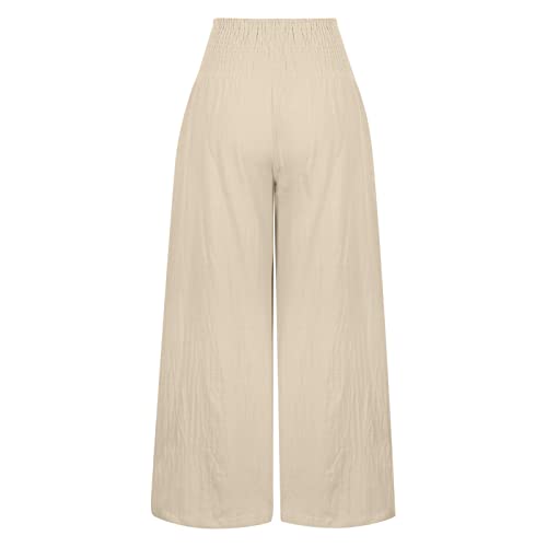 XUNRYAN Women's Cotton Linen Wide Leg Pants Summer Casual High Waisted Boho Palazzo Pants Baggy Lounge Trousers w Pockets 5
