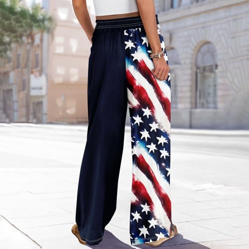 4Th of July Pants for Women American Flag Slit Baggy Wide Leg Pants High Waisted Elastic Summer Trouser Outfit Pockets 4