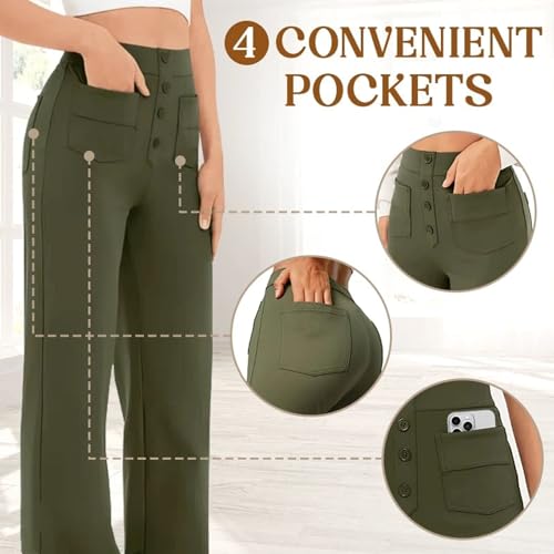 Flexipants - Women's Casual High Waist Stretch Pants, Comfort Breathable Elastic Straight Multi-Pockets with Buttons 4