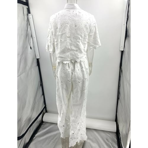 • 【Outfits for Women 2 Piece Sets】This elegant floral lace cropped shirt and belt-pocketed wide-leg pants set, perfect for a stylish evening out lace pants 2 piece for women