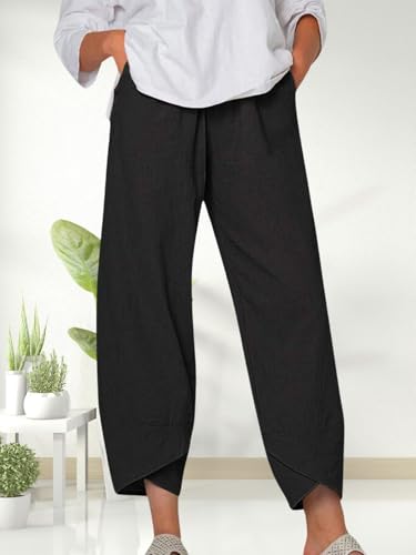 Summer Linen Pants for Women Solid Color Irregular Loose Capri Pants Bohemian Casual Vacation Beach Pants 6