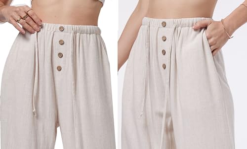 Fakanhui Women's Cotton Linen Wide Leg Pants Summer Relaxed Loose Comfy Casual Flow Baggy Slacks Linen Pants 4
