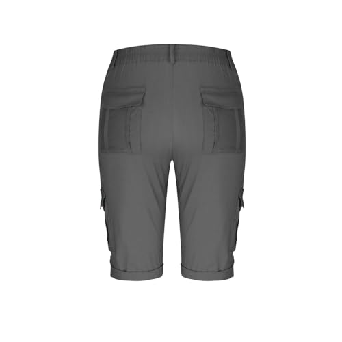 HOT ! Capri Cagro Pants for Women Knee Length Button Quick Dry Hiking Casual Pants Folded Hem Lightweight Trousers with Pockets