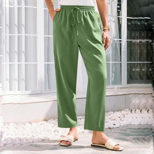 Linen Pants Women Trendy 2025 Casual Summer High Waisted Drawstring Lounge Trousers Straight Leg Pant with Pockets 7