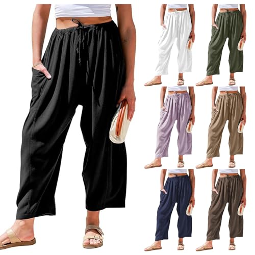 HOT ! Kubbon Womens Linen Wide Leg Pants Casual Loose Drawstring Palazzo Pants Casual Wide Leg Elastic Waist Trousers Beach Pants
