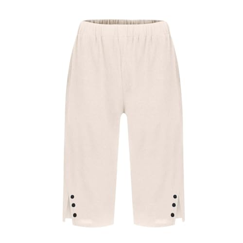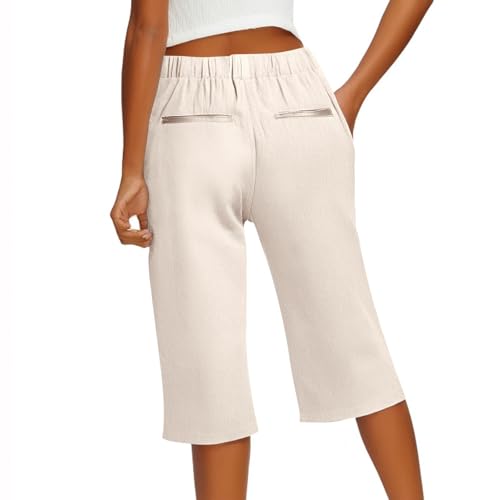 HOT ! Capri Pants for Women Summer Linen High Waisted Lounge Long Shorts Casual Loose Workout Pull On Pants with Pockets