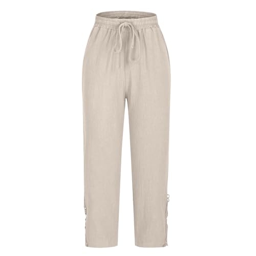 More information about HGps8w Lace Patchwork Linen Pants for Women Elastic Waist Comfy Casual Solid Versatile Loose Work Trousers with Pockets