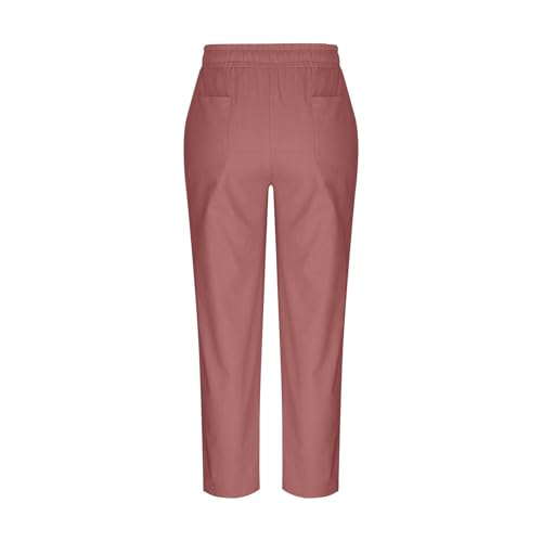 Linen Clothes for Seniors Women's Breathable Cotton-Linen Pants Casual Summer Crop Trousers High Waisted Drawstring 6