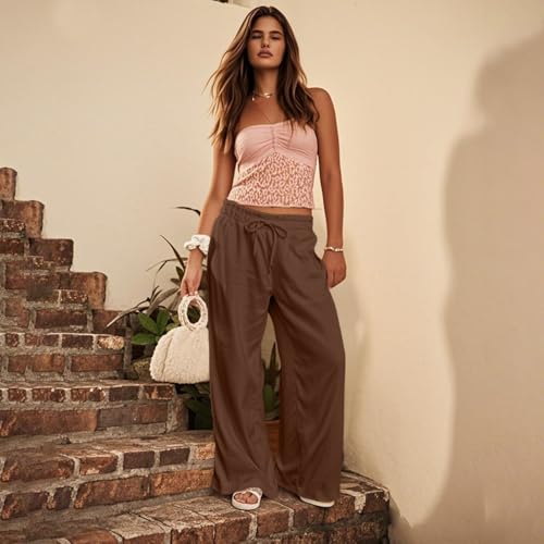 Wide Leg Linen Pants for Women 2025 Casual Loose High Waisted Pants with Pockets Flowy Comfy Beach Trousers Work Outfits 2