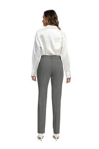 FUNYYZO Women Long Office Pants High Waisted Work Pants Dressy Casual Straight Leg Elastic Waist Suitpants 6
