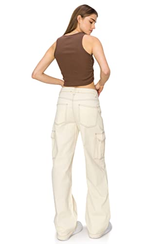 Cali1850 Women’s Straight Leg Cargo Pants - High Waisted Contrast Stitch Twill Fabric Casual Multi Pockets Trousers 6