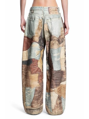 Angsuttc Wide Leg Lounge Pants for Women Color Block Faux Denim 3D Digital Printed Pant Elastic Faux Jean Brown L 6