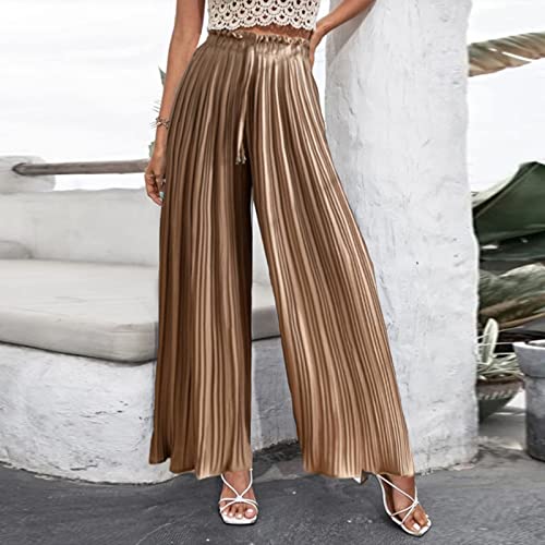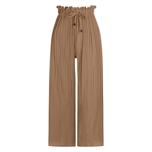 HGps8w Women's Chiffon Pants Casual Loose Elastic Waist Pleated Wide Leg Palazzo Pants with Drawstring 7